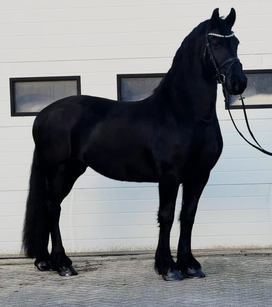 🖤 Te koop: Prachtige Friese merrie 🖤 8 jaar – ca. 162 cm Wij bieden deze mooie en stijlvolle Friese merrie aan ✨ Ze is 8 jaar oud en meet ongeveer 162 cm. Een echte verschijning met een lief en betrouwbaar karakter ❤️. In de omgang is ze zeer braaf en vriendelijk 🤍, fijn in de dagelijkse verzorging en makkelijk in de hand. Ze is beleerd voor de koets en loopt zowel éénspan als tweespan 🚘🐴, wat haar veelzijdig en betrouwbaar maakt. Een ideale merrie voor recreatief gebruik, mennen of voor iemand die op zoek is naar een eerlijke Friese dame met een fijn karakter 🌟 📩 Meer informatie of een bezichtiging op aanvraag.