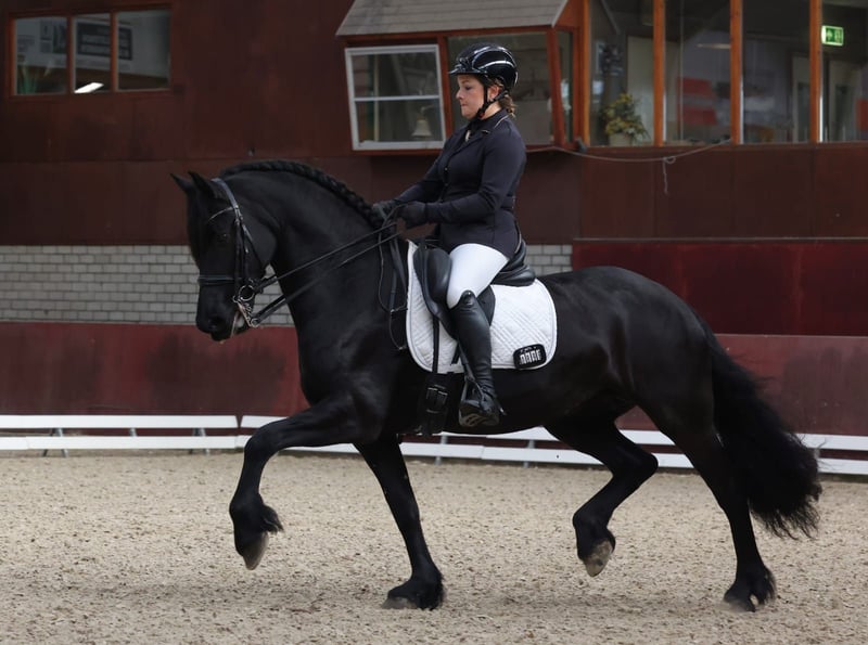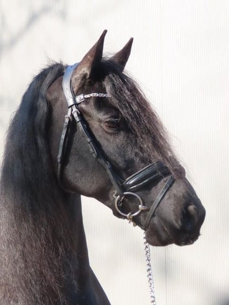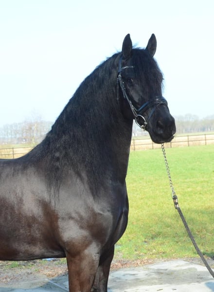 FEMKE FAN MEREN-STATE Omer (ster) X Fabe (ster) x Nanning (ster) x TJimme (ster pref.) Hoogte 1.63 m ZZ licht met Winst Alle knoppen zitten erop en ze doet de wissels met gemak. Ze verdient een ervaren ruiter, en heeft veel wedstrijd en show ervaring. Ze is tevens beleerd voor de wagen. Femke is een atletische 9-jarige merrie met karakter. Ze is een aansprekende merrie met een prachtig hoofd en zeer mooi behang. Ze heeft een nakomeling van Jimte 533 welke ook aanwezig is, alwaar ze een geweldige moeder voor was. Ze wordt gemakkelijk drachtig maar vanwege de sport nu niet dragend en ook (nog) niet gedekt wat de nieuwe eigenaar de kans geeft om dit jaar eventueel een eigen hengstenkeus te maken. Röntgenologisch februari 2026 gekeurd. Filmpje en prijs op aanvraag en valt in de hogere prijsklasse. Bij interesse graag een pb naar 06 49226030 of 06 57779399