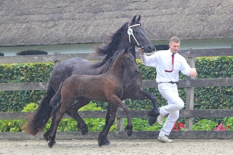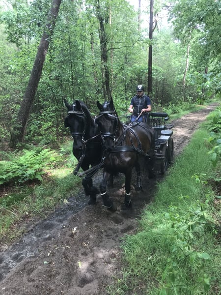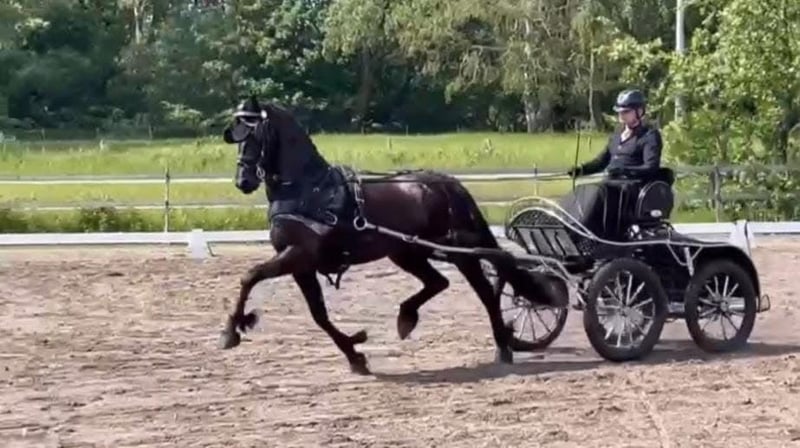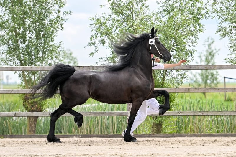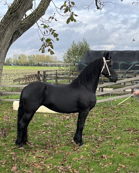 Wij bieden te koop aan i.v.m. jonge aanwas onze 9 jarige drachtige Fries Stermerrie met vol papier. Ze is een afstammeling van Tsjalle 454 x Norbert 444 x Goffert 369 x Feitse 293. Inmiddels heeft ze 11 winstpunten behaald in het Z mennen. Ze is betuigd in het enkel en dubbelspan. Het is een merrie met veel go en een zeer sterk achterbeen. Zowel op stal als in de omgang is ze braaf. Ze komt uit een zeer mooie en sterk fokkende predicaat rijke lijn van stam 8. De grootmoeder is de befaamde Annegjen, Ster, dubbel Preferente Prestatie merrie. Moeder van o.a. 2 dekhengsten Maeije 440, Wardy 509 en de legendarische Model merrie Ytsjen. De Moeder van deze merrie is de Kroon prestatie AAA merrie Gepkjen. De overgrootmoeder is de Model Sport merrie Ynskjen B. Zij komt uit een lijn met veel sport aanleg. Haar 5 jarige dochter Oelkjen Wilora is ster en kreeg een 8 voor haar zeer sterke draf (zie laatste foto). Ze is dragend van de hengst Siebren 547 en verwacht haar 5e veulen 19 mei 2026. Eventueel is het mogelijk om een afspraak te maken om haar veulen (als het een merrie is) terug te kopen. Ze heeft altijd makkelijk geveulend en is ook makkelijk weer drachtig te krijgen. Zij is vrij van zowel het waterhoofd als dwerg gen. Kortom een interessante merrie uit een fokzekere stam voor zowel de fokkerij en/of de sport. Bij interesse graag een bericht via whatsapp op 06-30400219 filmpje op aanvraag beschikbaar Niet op zondag.