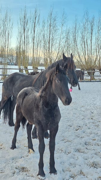 Fries hengsten veulen Maurus 441 x Alwin 469 te koop! Met pijn in mijn hart moet ik mijn super knappe Friese hengsten veulen van 9 maanden oud te koop zetten wegens geen match.😢 Er was mij verteld dat hij geen hengsten gedrag vertoonde maar dit is dus helaas niet het geval. Voor dat ik reacties krijg met je koopt toch een hengst. Van mij mag hij best hengsten gedrag hebben, maar in de vorm die hij nu laat zien is het geen match met mij. Het is verder een super lief beest, knuffelig, heel erg speels gaat graag met zijn speelgoed gooien, en houd van knuffels. Hij vertoont geen agressief gedrag, hij is meer enorm aanwezig en gebruikt zijn gewicht graag. Hij komt van een goeie afstamming, zijn vader is Maurus 441 SPORT AA, de vader van moeder is Alwin 469 Sport Preferent AAA. Op foto 2 staat hij naast zijn moeder. Hij kan super mooi lopen en komt graag naar je toe, hij is erg mensgericht. Hij is ingeënt, gechipt en heeft een stamboek. Voor filmpjes stuur gerust een pb. Inschrijven bij het KFPS mogelijk. Het liefste heb ik zo snel mogelijk een goed huisje voor hem waar hij kan opgroeien en de liefde en opvoeding krijgt die hij verdient en nodig heeft. Dat is voor hem beter en voor mij. Voor de prijs en verdere vragen stuur gerust een pb. DE BELLER IS SNELLER: 0682161631 Heel veel liefs, Ruth & Dylano