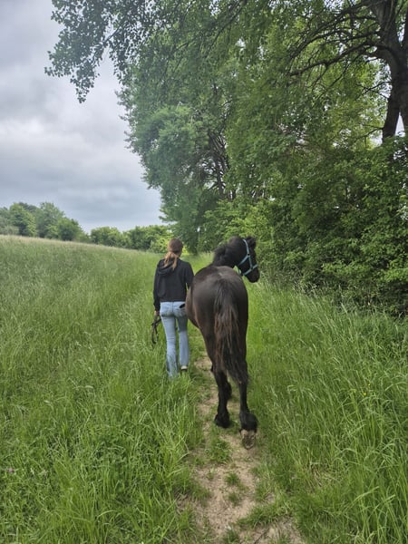 For sale is our beautiful Friesian stallion, born in 2024. Last year, he was awarded the title of Best Foal at the breeding show in Alsfeld, receiving second premium. Ari enjoys going for walks—alone or with company—and is very well-behaved, clear-minded, and a joy to watch grow up. Currently, he is still on pasture with his friends, enjoying the grazing season. He easily separates from his herd and is full of trust. His special nature makes him a reliable companion. We welcome interested parties to visit us in Hofheim and see him for themselves. Thanks to his excellent pedigree and wonderful temperament, he would also be an excellent candidate for breeding. We are only placing Aarjen in the best hands. No stabling-only inquiries, no dealers. Serious inquiries are very welcome at any time via WhatsApp.