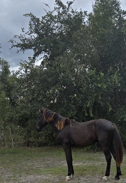 2024 Friesian Sport Horse Foaling DOB: 03/31/24 Stud: Kuhmaro KFPS Registered Friesian(on Facebook) Dam: Amish-bred Dutch Harness Horse He is black but this Florida sunshine has given him some blonde tips! Halter broke, stands tied, lunges, loves being scratched/groomed, trailers well. Excellent temperament, in your pocket, gentle, smart, & respectful. "Born broke" Hes got no spook, very thoughtful & inquisitive. Kind, quiet eye; always processing. Raised right & ready for next phase of ground work. Has been turned out on pasture w/mom & dad in a herd to grow, learn & just be a baby. He has always been very independent of his mom. Started trying moms food at 1 week old! Loves to jump already. Amazing Dressage prospect. But basically he's gona make someone a great eventer or jumper... Will mature to between 16.1-16.3hh Has the Friesian thick double mane! Videos available upon request. 30-day health certificate & lifetime protection take-back no questions asked