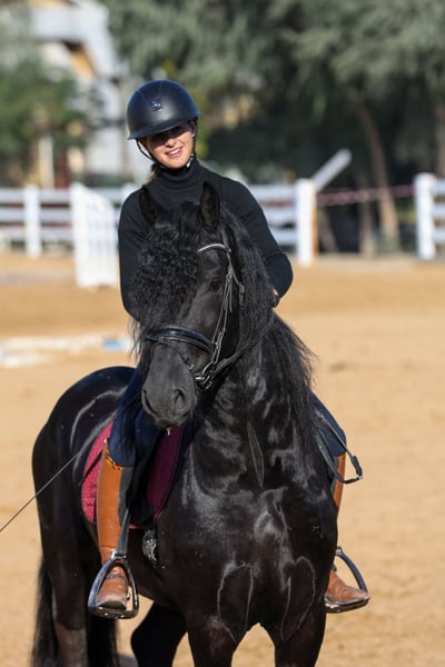 Tinus is a young Friesian stallion with an exceptionally striking appearance and a true baroque type that immediately captures attention. He is a stallion with substance, presence, and charisma, exactly what Friesian enthusiasts are looking for when they want a horse that stands out both in the stable and in the arena. He combines the classic Friesian look—deep black coat, strong frame, expressive head, and impressive mane—with a confident and masculine appearance. Tinus is a stallion that makes an impression without trying: bold, proud, and full of presence. Pedigree Jehannes x Ulbrân This pedigree brings together strong Friesian bloodlines, known for producing horses with power, expression, and a solid foundation. Tinus clearly reflects these qualities in his build and overall type, making him an interesting prospect for someone who appreciates a traditional Friesian with strength and character. Highlights - Young Friesian stallion - Very striking and eye-catching appearance - Strong baroque type - Powerful frame and correct conformation - Deep black color with expressive features - Masculine, proud presence - Ideal for lovers of the classic Friesian Tinus is a stallion for those who value authentic Friesian type — baroque, powerful, and impressive. Whether for future riding, breeding prospects, or simply owning a horse with undeniable presence, Tinus is a true head-turner. 📍 Available now 🔒 Serious enquiries only A rare opportunity to acquire a young Friesian stallion with real baroque strength and unmistakable presence.