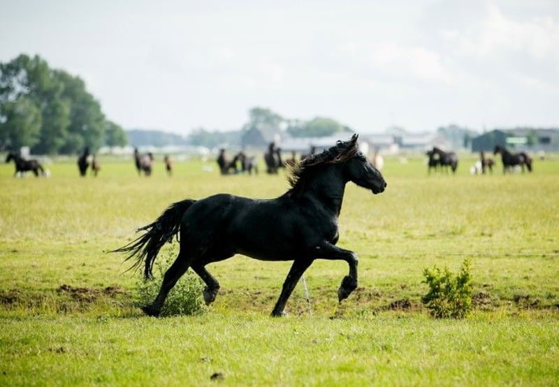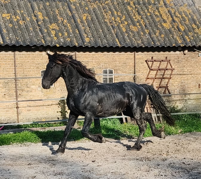 Meet Tjerk, a beautiful 3.5-year-old Frisian stallion who is expected to grow to approximately 1.55m. With his impressive, graceful movements, he seems to float through the arena. This handsome boy loves attention and we are sure that he will be enthusiastic to work with you. Tjerk is curious and eager to learn. Not only his movement and posture make him special; he is also strong and robust and he grew up with care and love in a natural herd on the vast pastures of Stud farm Vrijepaarden. Here he enjoys a healthy, free youth in harmony with his environment. If you wish, Tjerk can still be castrated here. At Stud farm Vrijepaarden we have a wide range of Frisian horses and Barock Pintos, all raised with love and passion. Our horses grow up in large herds, which contributes to their social, stable character. They are all green, chipped and have a passport. Feel free to come by to view our horses and find the horse of your dreams. We speak German, Dutch, Frisian and English, so don't hesitate to contact us for an appointment. Interested? Call or send a WhatsApp if you are seriously interested. We welcome you!