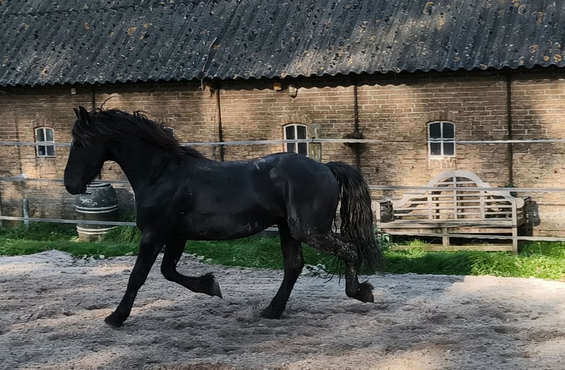 Lernen Sie Tjerk kennen, einen wunderschönen 3,5-jährigen Friesenhengst, der voraussichtlich eine Größe von etwa 1,55 m erreichen wird. Mit seinen beeindruckenden, anmutigen Bewegungen scheint er über den Platz zu schweben. Dieser hübsche Junge liebt Aufmerksamkeit und wir sind sicher, dass er sich darauf freuen wird, mit Ihnen zu arbeiten. Tjerk ist neugierig, lernbegierig und begierig darauf, Neues zu lernen. Es sind nicht nur seine Bewegung und seine Aufrichtung, die ihn zu etwas Besonderem machen; Er ist außerdem stark und robust und wurde mit Sorgfalt und Liebe in einer natürlichen Herde auf den weitläufigen Wiesen von Gestüt Vrijepaarden aufgezogen. Hier genießt er eine gesunde, freie Kindheit im Einklang mit seiner Umwelt. Auf Wunsch kann Tjerk hier noch kastriert werden. Bei Stoeterij Vrijepaarden haben wir eine große Auswahl an Friesenpferden und Barockpintos, die alle mit Liebe und Leidenschaft aufgezogen werden. Unsere Pferde wachsen in großen Herden auf, was zu ihrem sozialen, stabilen Charakter beiträgt. Sie sind alle noch roh, gechipt und haben einen Equidenpass. Kommen Sie gerne vorbei, um sich unsere Pferde anzusehen und das Pferd Ihrer Träume zu finden. Wir sprechen Deutsch, Niederländisch, Friesisch und Englisch. Zögern Sie also nicht, uns für einen Termin zu kontaktieren. Interessiert? Rufen Sie an oder senden Sie eine WhatsApp, wenn Sie ernsthaftes Interesse haben. Wir wünschen Ihnen ein herzliches Willkommen!