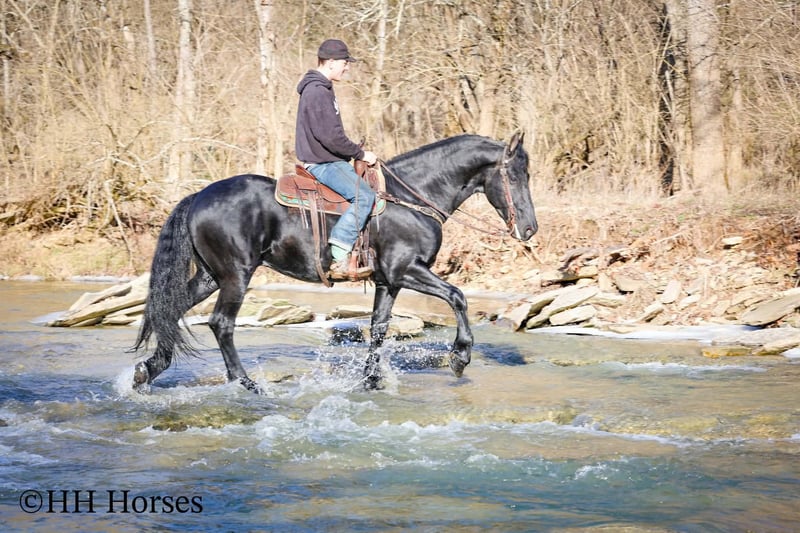 ❤️🔥𝑩𝒆 𝑴𝒊𝒏𝒆 𝐒𝐄𝐋𝐄𝐂𝐓❤️🔥 Happening now thru MONDAY | FEBRUARY 9th - Available EXCLUSIVELY on HorseBid's website! For more details and to register visit: www.Horsebid.com CONSIGNOR CONTACT: HH Horses 304-238-4155 LOCATION: Hillsboro , KY BREED: Friesan REGISTERED: Yes REGISTERED NAME: DOAITSEN'S IMAGE COLOR: Black HEIGHT: 16.2 AGE: 5 GENDER: Stallion This is "DOAITSEN'S IMAGE", a very attractive, handsome, and intelligent REGISTERED PUREBRED FRIESIAN STALLION that is well broke to ride and drive. He is 16.2 hands tall and 5 years old. This stallion has been shown, used in many stallion showcases, won many blue ribbons in the hitch classes, and been shown under saddle successfully as well. He is extremely well mannered for a stallion and has been trail ridden amongst mares and geldings with no fuss. He handles very quietly in the barn even when in very close proximity to other horses. He is a true gentleman with excellent ground manners. He stands tied, loads, bathes, and hauls. He is a proven breeder with a nice foal crop on the ground. He is an own son of "DOAITSEN 420". This nice stallion is very people oriented and he loves attention. He aims to please, will go anywhere you ask him to trail riding, and will lead or follow when riding in a group. He rides out alone with confidence bravely. You can keep him a stud and breed some mares or you can geld him and have a top notch gelding. He is the kind of stallion that makes owning a stallion easy. He is a gorgeous mover, has nice conformation, is smooth to ride, and has lots of action. Here is the chance to raise some spectacular Friesian cross babies and to have a talented, smart, and well mannered stallion. He's a kind horse that is easy to hitch, harness, tack, mount, groom, and ride. The purebred Friesian stallions are hard to find. We Can Help With Delivery Anywhere In The United States. Call or Text Erin at 304-238-4155