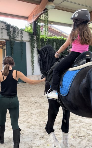 FOEKE VAN DE DEMRO STABLES (JEHANNES 484 X KYRA W.T) Stunning purebred Friesian stallion (not even aware of his breed) aged 8 years. Height: 1.72 m at the withers. A horse of unparalleled beauty and kindness. VERY HEALTHY, NEVER had any health issues. Performs perfectly on flat ground, an exceptional horse. Suitable for any rider with a minimum of experience. IMPORTANT GENETICS!! We are looking for someone who will love him passionately. For more information: +39 3917059140 (Agata) +39 3513334724 (Fabio) NO dreamers or traders, please.