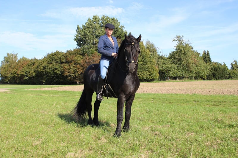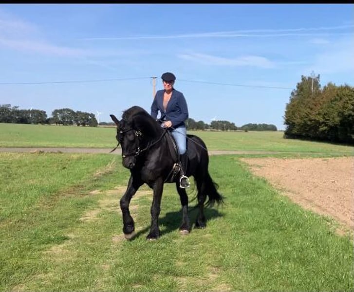 Hoy, lamentablemente, cada vez más difícil de encontrar: ¡Frisón barroco de la vieja escuela! Se encuentra a la venta un impresionante semental frisón, nacido en 2016. Un frisón de tipo barroco con una bonita postura y una altura de 158 cm, ¡es un verdadero atractivo! Este encantador semental es excelente para actividades de ocio. Jasper ama los largos paseos tranquilos y siempre se comporta de manera calmada y relajada. Está bien educado, es sociable y tiene un carácter suave, lo que lo convierte en un compañero ideal para paseos relajados y momentos agradables en el campo. Jasper fue montado a los 7 años. La conducción tendría que comenzar de nuevo, ya que no ha sido montado desde entonces. Además, fue montado muy tarde y su nivel de entrenamiento lo calificaría como básico en todos los aires. Jasper necesita un manejo amoroso y constante. Responde a la rigidez y la falta de equilibrio quedándose quieto. Siempre se mantiene amigable, pero se detiene. Por su persona, haría cualquier cosa. Jasper necesita estabilidad y una persona de referencia firme. ¡Solo lo entrego a la persona adecuada! Las imágenes y videos se enviarán solo bajo solicitud telefónica. Posee un pasaporte sin ascendencia. ¡Exámenes veterinarios y radiografías de 2024 en orden! Dientes cuidados, osteopatía regular y cuidado de cascos cada cuatro semanas. Jasper puede ser castrado en el lugar o en una clínica cercana. Esto queda a cargo del comprador. Por favor, tenga en cuenta que Jasper es un ser vivo y los datos aquí proporcionados se presentan sin garantía alguna. Si está interesado o tiene más preguntas, estoy a su disposición.