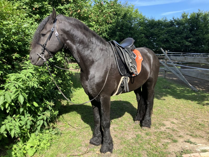 Heute leider nur noch selten zu finden: Barockfriese vom alten Schlag! Zum Verkauf steht ein beeindruckender Friesenhengst, geboren im Jahr 2016. Ein Friese noch im barock stehender Typ mit schöner Aufrichtung und einem Stockmaß von 158 cm ist er ein echter Hingucker! Dieser charmante Hengst eignet sich hervorragend für die Freizeitgestaltung. Jasper liebt lange bummelige Ausritte und ist dabei stets ruhig und gelassen. Er ist gut erzogen, umgänglich und hat ein sanftes Wesen, das ihn zu einem idealen Partner für entspannte Ausritte und gemütliche Stunden im Gelände macht. Jasper wurde 7jährig eingefahren. Das Fahren müsste wieder neu angefangen werden, da er seitdem nicht mehr gefahren wurde. Zudem ist er sehr spät angeritten und sein Ausbildungsstand würde ich als Basis in allen Gangarten bezeichnen. Jasper benötigt eine liebevolle, konsequente Führung. Er quittiert strenge und Unausgeglichenheit mit Stehen bleiben. Er bleibt stets freundlich dabei aber er parkt dann ein. Für seinen Menschen geht er durchs Feuer. Jasper benötigt Beständigkeit und eine feste Bezugsperson. Ich gebe ihn nur an den passenden Menschen ab! Bilder, Videos werden nur nach telefonischer Anfrage versandt. Er besitzt einen Pass ohne Abstammung! AKU nebst Röntgen aus 2024 iO! Zähne gemacht, regelmässig Osteo sowie vierwöchige Hufbearbeitung, Jasper kann vor Ort kastriert werden bzw in unmittelbarer Nähe in einer Klinik. Das obliegt dem Käufer. Bitte bedenken Sie, das Jasper ein Lebewesen ist und die hier angegebenen Daten unter Ausschluss jeglicher Gewähr gefasst sind. Bei Interesse oder weiteren Fragen stehe ich gerne zur Verfügung.