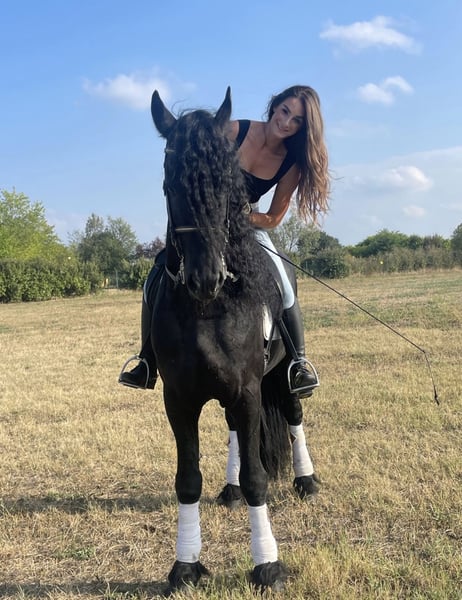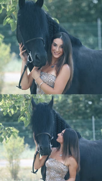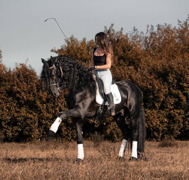 FOEKE VAN DE DEMRO STABLES (JEHANNES 484 X KYRA W.T) Stunning purebred Friesian stallion (not even aware of his breed) aged 8 years. Height: 1.72 m at the withers. A horse of unparalleled beauty and kindness. VERY HEALTHY, NEVER had any health issues. Performs perfectly on flat ground, an exceptional horse. Suitable for any rider with a minimum of experience. IMPORTANT GENETICS!! We are looking for someone who will love him passionately. For more information: +39 3917059140 (Agata) +39 3513334724 (Fabio) NO dreamers or traders, please.