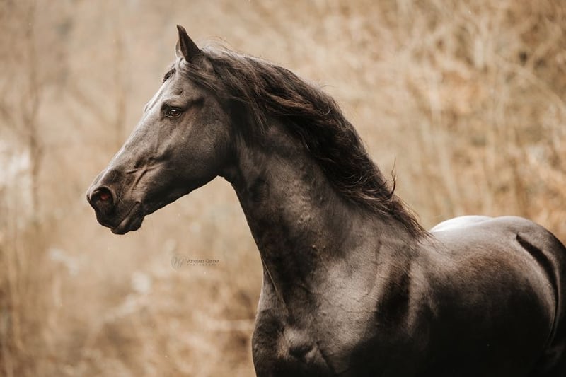 Tiark von der Kornsmühle Friesian horse, born 2014, black stallion, height 1.67 m HB 1 stallion - licensed and performance tested Not a carrier of the genetic defects hydrocephalus and dwarfism, free of chestnut factor (Rotgen), homozygous black Tiark von der Kornsmühle is a son of the highly successful Norbert 444 Pref. Sport and the model and premium mare Finja von der Kornsmühle M, S, Pr.St. He has powerful and ground covering gaits with a lot of drive from the hindquarters and convinces with his good rideability and constant willingness to perform in combination with his very people-oriented and lovable character. His good interior and exterior, his excellent pedigree and an inbreeding factor of 0.0% are very interesting for breeding. His offspring are also convincing: typey, noble and extremely strong-moving foals that have already been awarded high ratings as champion foals of various years and gold-winning offspring. Tiark is also an interesting sire for mares of other breeds. In addition to pure Friesian foals, he already has some very beautiful black pinto offspring. Tiark von der Kornsmühle is a licensed and performance-tested stallion. He completed his 50-day performance test in Redefin with very good marks in all disciplines. He is registered in Stallion Book I and is available to all breeds. Fresh semen dispatch via the EU insemination station Triple J Stables. Frozen semen via the EU insemination station Freeze & Breed.