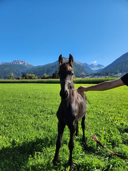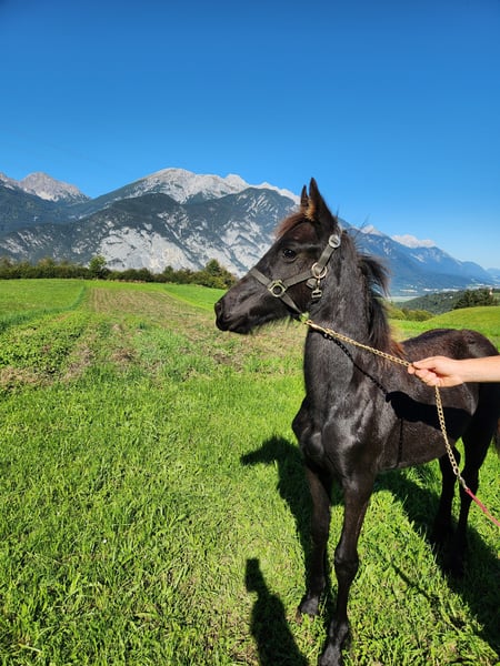 Friesenfohlen Fernando Geboren am 03.02.2025 Er hat einen sehr freundlichen und liebevollen Charakter. Mutter, Vater und auch seine Geschwister sind allesamt sehr angenehme und folgsame Pferde. Fernando lernt sehr leicht und ist natürlich noch verspielt. Huf heben, führen, Putzen, etc. funktionieren sehr gut. Er ist gehorsam und wird von Tag zu Tag mutiger. Er ist komplett schwarz und hat keine Abzeichen. Die Abstammung ist sehr gut. Allerdings ist die Mutter nicht im Stammbuch eingetragen. Er wurde regelmäßig entwurmt, ist gesund und von der Mutter entwöhnt. Beim Kauf ist der Pferdepass inkludiert und er wird auch noch gechipt. Selbstabholung - gegen Aufpreis/Anfrage kann Fernando aber auch in einem gewissen Radius zu Ihnen transportiert werden.