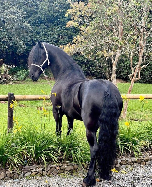 ¡Oportunidad de adquirir un magnífico caballo! Se ofrece en venta un hermoso ejemplar de raza Frisón oriental, semental de excelente calidad. Nacido en 2019, este caballo negro destaca por su imponente alzada de 173 cm y su presencia elegante. De carácter tranquilo y noble, es ideal para concursos, doma o reproducción. Además, su conformación barroca le confiere un aspecto distinguido y clásico. No pierda la oportunidad de contar con un semental de gran potencial y belleza. Para más información, no dude en contactarnos.