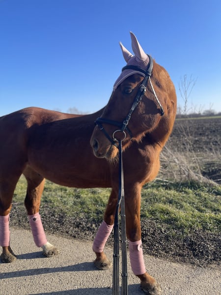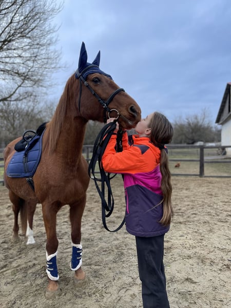 He is being sold due to lack of space and time. He is a friendly and loving horse 🐴. He would never bite or kick ☝🏻. I would recommend him to more advanced riders ⭐️. He could also be a school horse 💖. He has only a little jumping experience; he has jumped 90 cm free once, otherwise he is familiar with poles and cavaletti 👍🏻. We really hope that he finds a new, loving home soon ❤️. We would be happy to send you pictures and videos 💌.