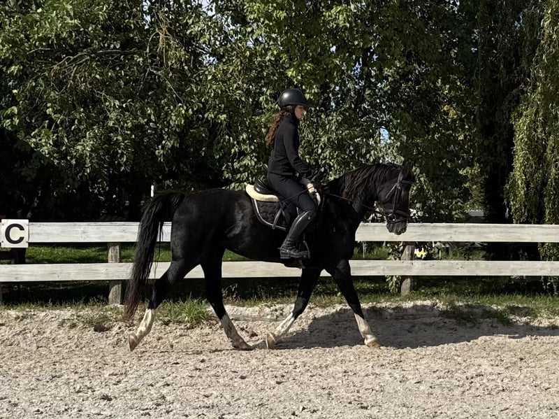 Wir bieten hier zwei sehr elegante Gelderländer Rapp-Stuten an (16 und 18 Jahre alt), beide ca. 1,56m groß. Ursprünglich als Pass-Gespann genutzt, werden sie nun als Freizeitpferde einzeln oder zusammen angeboten oder an erfahrene Fahrer. Wir selbst haben sie letztes Jahr im Dezember gekauft, ohne wirklich zu wissen, was uns erwartete, da der Vorbesitzer leider kurz zuvor verstorben war. Die beiden Stuten sind absolut sicher im Umgang, verlade- u. schmiedefromm und im Straßenverkehr durch Nichts zu erschüttern. Da sie reinrassig sind, könnten sie auch prima als Zuchtstuten eingesetzt werden. Volle Papiere und Abstammungsnachweise sind vorhanden. Sie sind dem Rasseportrait entsprechend sehr aufmerksam, wach und vorwärts gewandt. Wir sind sie bislang gefahren. Rein auf Wassertrense sind die Beiden am kleinen Finger zu beherrschen. Beim ersten Losfahren entwickeln sie hin und wieder eine gewisse Unruhe, die zu mindern es wohl mehr Zeit braucht als wir im Stande waren zu investieren. Deshalb nur an Fahrer mit ausreichend Erfahrung abzugeben. Oder an Reiter mit entsprechendem Wissensstand, da die Beiden erst seit wenigen Wochen unter dem Sattel gehen. Beide hängen etwas aneinander, gehen aber auch getrennt mit anderen Pferden brav ins Gelände. Allein sind sie erst wenige Male im Gelände gewesen, deshalb noch etwas nervös aber ebenfalls sehr gut händelbar. Auf dem Platz lassen sich alle Grundgangarten abrufen, wenn auch zunächst wert gelegt wurde auf eine gymnastizierende Vorwärts-Abwärts-Bewegung. Solange sie bei uns sind, sind die Beiden immer gesund gewesen. Zuletzt geimpft wurden beide im März 2025 Influenza/Tetanus. Im Moment stehen sie im gemischten Herdenverband von 40 Pferden ganzjährig draußen. Geholt haben wir sie aber aus Boxenhaltung. Sie kennen also beides. Auf den ersten drei Bildern ist die 18-jährige Caronica zu sehen, während die letzten Fotos die im etwas sportlicheren Typ stehende, 16-jährige Eronica zeigen. Auf Wunsch können wir auch noch einige Videos schicken. Der angegebene Preis gilt pro Pferd. Werden sie als Gespann gekauft, ist der Verhandlungsspielraum etwas größer.