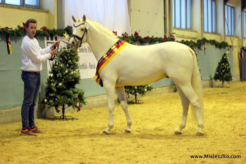 GENSCHER jest obecnie zwycięskim ogierem ZFDP Körung 2017 z Kreuth. Jest najlepszym kucykiem pochodzenia i talentu. Syn Doppelbundeschampi- na Złotym Zachodzie, wyhodowany przez Wernera Berensmeyera, jest ostatnim synem legendarnego DESIREE Domingo, jednej z westfalskich klaczy morskich w ogóle, który był odpowiedzialny za zwycięzcę ogiera Cezanne de Luxe, licencjonowanego Cezara Obolensky'ego i jego pełną siostrę Bundeschampionesse C-Dur (Eva Möller) jako klacz narodową. Kilka z jej córek zostało klaczami państwowymi premium, w tym gwen Stefania, która była w zeszłym roku ostatnią klaczą pierścieniową w Westfalii. Nasze ogiery stacji Kachunga & Adoro są również częścią tej udanej rodziny. GENSCHER ma prawie idealną sylwetkę z dużymi, szybkimi liniami i kształtami, a jednocześnie stworzył typ-piękny, kucyka, w który można się zakochać. Z trzema bardzo dobrymi podstawowymi chwcami, może doskonalić się zarówno przy okazji certyfikacji, jak i w codziennej pracy na longe. Wstępne testy pod siodełkiem są obiecujące. Kucyk ogier, który przynosi wszystko, aby stworzyć sensację zarówno w sporcie, jak i hodowli. Plemię Desiree, zwycięzca Westf. Eliteschau'96 i zwycięzca Bundesponyschau'96, między innymi, przedstawił gek. Ogiery Cezanne de Luxe (m.in. FS Champion de Luxe, Going Top (1. zwycięzca rezerwowy 2000/int. Pony FEI) przez Going East i Bundeschampionesse c-dur (Eva Möller) Ogiery licencjonowane: Oliver K WE (zwycięzca ogiera Weser-Ems'11, Vice-Bunde- schampion'13) przez Ombri B, Lagos (2. Kucyki sportowe: Caruso W 2 (Dr.M) autorstwa Courage, Jil's Jungle Prince (int. Spr.M) przez Jacobss. Rocky, młodsza siostra Madonny (Fap.S) i Madonna 51 (Fap.S) merlina, a także ADORO (druga rezerwowa zwyciężczyni Ms-Handorf) i KACHUNGA, ogier premium Münster-Handorf. GENSCHER posiada certyfikat w Kreuth, o uznanie dla Westfalii. Opłata za insinnation 250,00 Euro Opłata ciążowa 200,00 Euro