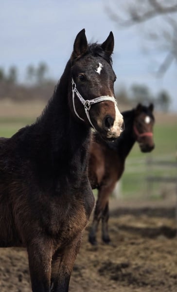 Echt een geweldig veulen in model en beweging. Een zeldzaamheid in de fokkerij. Gefokt uit TG van Londontime uit een moeder van de Neustadt P-stam. Moeder zelf FN prestatiemerrie met SLP 7.98. Rijdbaarheid buitenruiter 9.0, interieur 9.5. Een merrie met potentie voor dressuursport en fokkerij op hoog niveau!
