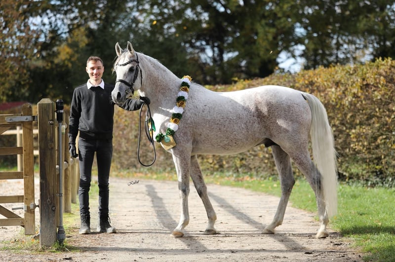 Elenya es una yegua excepcionalmente armoniosa y con un movimiento potente, que destaca en todos los aspectos. Tiene una hermana completa. Ambas yeguas serían entregadas a un hogar que valore y aprecie a los animales. Ambos padres son montados y han recibido la distinción de premio de la asociación. Además, Elenya fue premiada como potra. Nuestros caballos jóvenes crecen en grupos en amplios pastizales. En verano, permanecen en los campos todo el día, y en invierno en boxes con acceso diario al exterior. Alimentamos de forma individualizada. Esto significa que, durante el invierno, los caballos se halan y se atan todos los días para que puedan comer sin estrés. Contamos con más de 50 años de experiencia en cría y cuidado de caballos, así como en agricultura. El video muestra al padre, A Magic Man of Kossack.