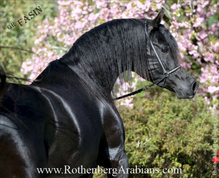 GOLDPRÄMIERTER reinerbiger (homozygoter) rein ägyptischer Vollblutaraber-Rapphengst GR FASIN vom goldprämierten Rapphengst Maheeb! Rappe ohne Abzeichen! Fantastischer exotischer Typ, super Gebäude & Bewegungen, wundervoller cooler Charakter und sein bewährtes Spitzenpedigree zeichnen ihn aus! SCID / CA / LFS frei! Rappvererber! Nachzucht bisher in Europa und im Nahen Osten! Zeitweise Samenversand in bester Qualität, Lebendfohlengarantie (Nachbedeckung im Folgejahr, Hengstwechsel nach Absprache möglich). Insgesamt stehen Ihnen 15 rein ägyptische Hengste zur Verfügung - teils bei uns im Gestüt, teils auswärts auf Deckstation bzw. über Frischsamenversand und zum Teil auch mittels Gefriersamen - die meisten Rappen, etliche davon reinerbig, etliche Goldprämiert ! Weltbekannte Spitzenhengste teils gold-prämiert / Körungssieger, teils mit großen Schauerfolgen sowie erfolgreicher Nachzucht in der ganzen Welt (Schau & Distanz)! Rappen & Schimmel! Alle Hengste sind SCID & CA frei, Decktaxen ab Euro 700,- (je nach Hengst und Rasse / Abstammung der Stute) - genaue Deckbedingungen auf Anfrage. Außerdem haben wir sowohl aus unserer eigenen, weltweit erfolgreichen Zucht sowie von Deckkunden immer wieder Fohlen, Jung- und auch Zuchtpferde anzubieten - mehr Infos auf unserer Homepage www.Gestuet-Rothenberg.de bzw. alle aktuellen Verkaufspferde gerne auf Nachfrage. Nähere Infos gerne telefonisch unter 0049 / 0 90 91 / 37 07 oder per e-mail (bitte Anfragen per e-mail NUR mit vollständigem Namen und Adresse - danke!). Besuchen Sie uns auch auf Instagram: @RothenbergArabianStud