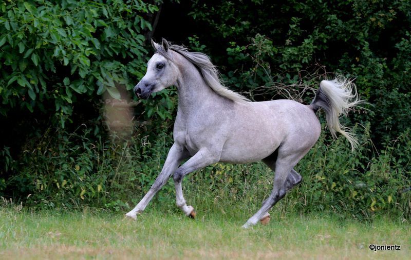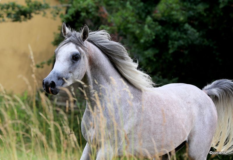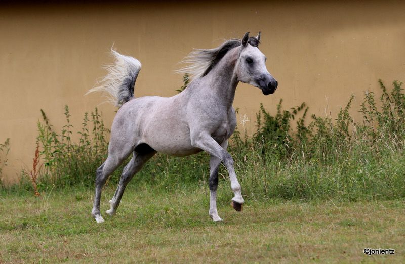 Abidan El Mujid is an exotically beautiful gelding with an excellent pedigree. He has a great conformation and foundation, as well as top movements, and is available for sport and/or leisure! He is very people-oriented, curious, willing to learn, and has already shown great potential during his initial training to develop into a reliable companion. He lives in a herd environment, is educated according to his age, and has been started in the basic gaits. If you are looking for a loyal and graceful companion who will stand by you through thick and thin, then Adam is the right one for you! If you are interested, we look forward to your contact to share more information and arrange a viewing appointment. www.goschenhof-arabians.de