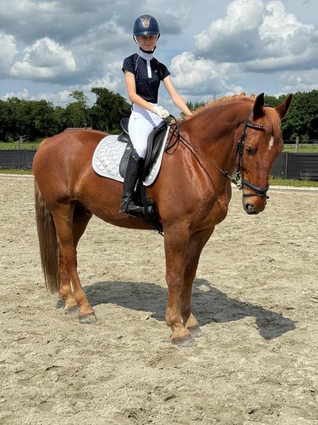 Suchst du nach einem fantastischen Groninger? Dann suche nicht weiter. Maico von Vredenheim, 10 Jahre jung, sucht ein Für-immer-Zuhause, in dem er weiter trainiert werden kann, aber vor allem auch schöne Ausritte genießen darf. Derzeit ist er im Working Equitation, WE0, mit Scores von über 69 % sowohl in der Dressur als auch im Stiltrail. Er hat die KNHS Dressurklasse B mit 11 Gewinnpunkten absolviert. Er ist bereit für L2 und kennt die Grundlagen wie Schulter binnen und Travers. Maico hat bereits seit zwei Jahren an Prinzessentagen teilgenommen – ein echtes Traumpony. Er ist ein echtes Kuscheltier, sehr brav und tut alles für seinen Reiter. Da er ein Fuchs ist, macht ihn das natürlich noch besonderer 🙂