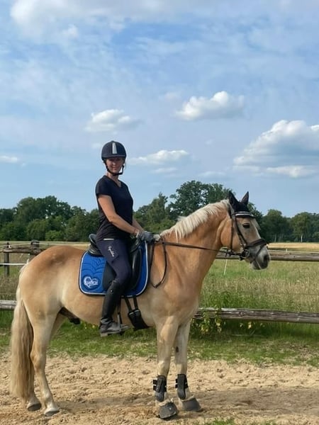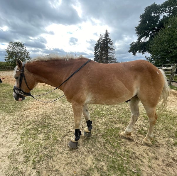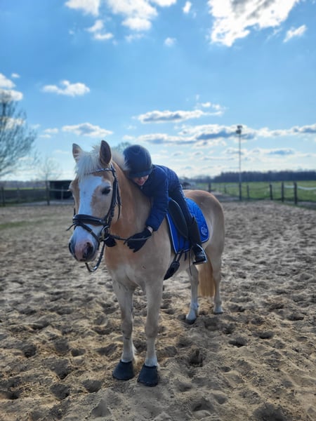 Unser 11-jähriger Haflinger-Mix-Wallach sucht ein neues, liebevolles Zuhause. Er ist ein vielseitig einsetzbares Pferd mit sportlichem Talent und einem großen Herz. In der Dressur solide gearbeitet, zeigt er ebenso Freude am Springen und überzeugt mit seiner Lernbereitschaft und Motivation. Ideal für ambitionierte Freizeitreiter, die ein Pferd mit Persönlichkeit und Charme suchen. Bei den Vorbesitzern wurde er in Dressur und Springen auf E- Niveau geritten. Aktuell lebt er im Offenstall in einer Wallach-Herde, kennt aber auch Boxenhaltung. Er ist sozial verträglich und fühlt sich in Gruppen wohl. Aufgrund fühliger Vorderhufe trägt er derzeit vorne Klebebeschläge (Duplos). Zuvor war er mit Eisen beschlagen; barhuf ist er leider nicht gehbar. Er ist kein reines Anfängerpony, da er im Umgang auch mal seinen Ponydickkopf zeigt und eine klare, faire Führung braucht. Bei Kinder und Jugendlichen am besten zusammen mit einer Erwachsenen Hand. Unter dem Sattel ist er dagegen ein echter Schatz – aufmerksam, zuverlässig und nie hektisch. Zu Beginn etwas triebig, danach sehr angenehm zu reiten. Er hat Sommerekzem, das sich mit Decke aber gut im Griff halten lässt. Eckdaten: * Geboren: 2014 * Stockmaß: 149 cm * Geschlecht: Wallach * Haltungsform: Offenstall & Boxenhaltung möglich * Sozialverträglich in der Herde * Sommerekzem (gut händelbar) * Beschlag vorne (Klebebeschlag oder Eisen) * Charakter:Kein Durchgänger, aber mit gesundem Ponydickkopf Der Preis ist auf faire Weise verhandelbar – wichtig ist uns, dass er in gute, passende Hände kommt.