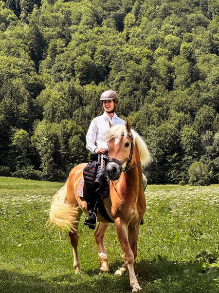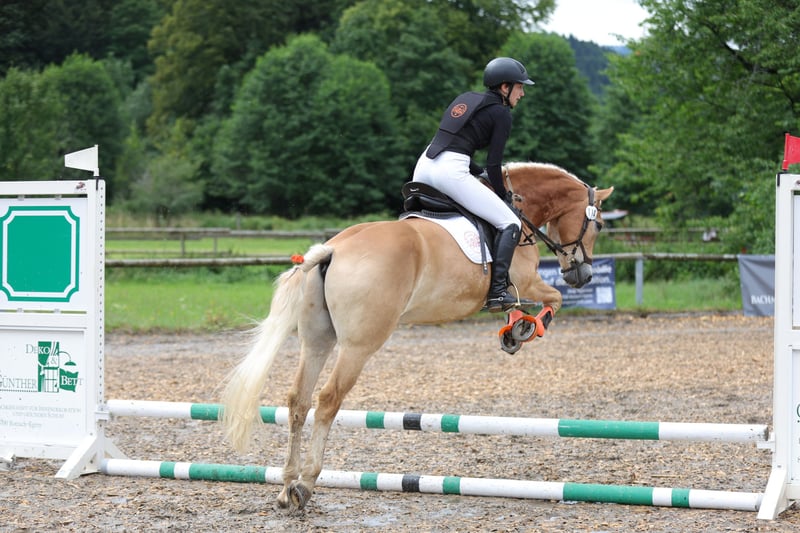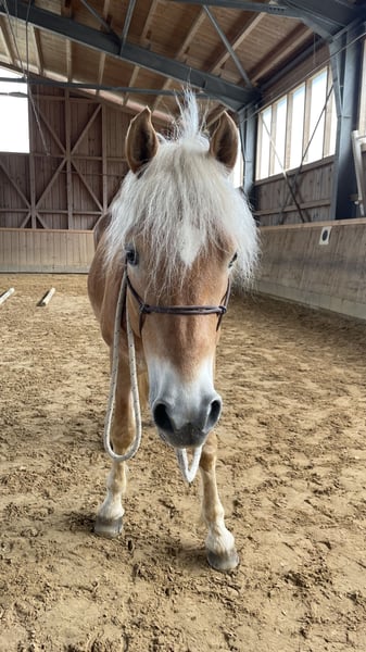 Our Haflinger gelding, Schach, has been a permanent part of our small riding school for two years, where he consistently impresses with his rideability and character, bringing joy to both children and adults. We have deliberately decided to find a permanent new home for our school horses after approximately 2-3 years. Schach is ridden 4-5 days a week for about an hour during lessons and is the ideal partner for children, beginners, as well as more advanced riders. Schach has been licensed and has completed his stallion performance test. He is trained up to A** level in dressage and shows clear potential for L-level. In show jumping, he moves confidently and with good awareness at A** level, always attentive and motivated. He has demonstrated his calm and motivated nature at competitions, earning numerous placings in rider trials. When hacking out, Schach is well-behaved and relaxed, always reliable. We can easily imagine Schach as a suitable partner for reintegration beginners or a mother-daughter team. Experienced riders will also have a lot of fun with him. He is accustomed to box stall housing with daily turnout. Schach is a dream horse and deserves a caring owner who can enjoy his daily trust and companionship.