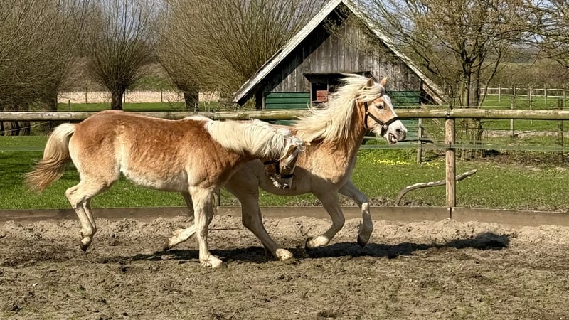 Wir verkaufen dieses hübsche Haflinger-Wallachfohlen aus einer durchgezüchteten Mutterlinie. Bert bringt das ideale Potenzial für Sport und Freizeit mit. Er punktet neben seiner Optik und dem typischen hellen Langhaar vor allem durch einen klaren Kopf. Er ist menschenbezogen, unerschrocken und geht neugierig auf neue Aufgaben zu. Er kennt das Anbinden, Führen, Putzen und landwirtschaftliche Maschinen. Damit bringt Bert sehr gute Grundlagen der Erziehung eines Jungpferdes mit. Er ist an den Menschen gewöhnt, lässt sich überall anfassen und ist damit auf das Leben als Reit- oder Kutschpferd vorbereitet. Vor allem kennt er das nebenherlaufen an der Kutsche. Bert ist mit seinem gleichaltrigen Kumpel Ernie artgerecht in einer Herde im wunderschönen Münsterland aufgewachsen. Die weitläufigen Wiesen und Weiden haben ihnen Trittsicherheit und Gelassenheit mitgegeben, die man sich von einem jungen Haflinger wünscht. Beide Fohlen sind robust im Offenstall aufgewachsen, werden regelmäßig entwurmt und haben einen Equidenpass. Beschreibung: Name: Bert Rasse: Haflinger (mit Edelblutanteil) Geschlecht: Wallach Geburtsdatum: 14.01.2025 Farbe: Fuchs mit hellem Langhaar Endmaß: voraussichtlich 145-150cm Zucht & Qualität: Bert stammt aus einer offiziell eingetragenen Zucht im Münsterland. Er besitzt volle Papiere (Abstammungstafeln) vom Rheinischen Pferdestammbuch. Bei der Anpaarung wurde besonders auf Charakterfestigkeit und korrektes Fundament geachtet. Bert ist gegen Tetanus geimpft, gechippt, besitzt einen Equidenpass und wurde dem Zuchtverband vorgestellt. Eignung: Durch sein korrektes Gebäude und seine schwungvollen Grundgangarten stehen Bert später alle Wege offen. Ob als Freizeit-Pferd, im Fahrsport oder für den ambitionierten Breitensport ist er ein nervenstarker Partner. Melden Sie sich gerne unter der Rufnummer: Kontakt: +49 152 05977730 Hinweis: Ein Kennenlernen ist jederzeit nach Absprache möglich! Bert und sein Kumpel Ernie können einzeln oder zusammen abgeben werden (Platz vor Preis).