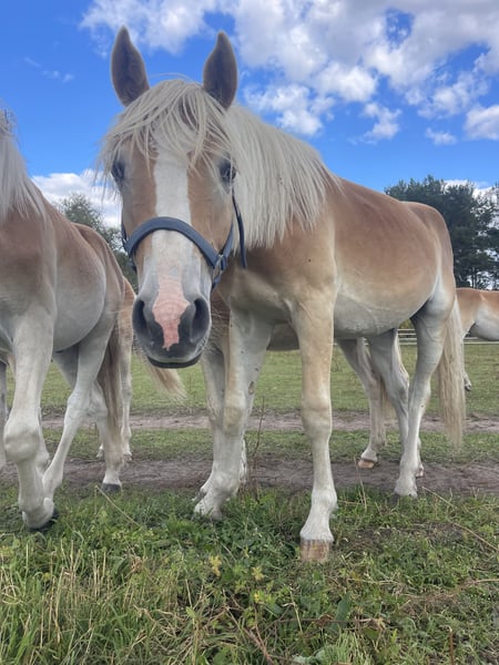 Santo Royal- HHK Dieses unglaublich ausdrucksstarke Fohlen von Santo Antares- C DE IMANA, schenkte uns unsere Verbandsprämien Stute Blume am 22.03.2024 ❤️ Der kleine Mann ist ein wahrer Herzensbrecher, ruhig, interessiert und einfach nur sympathisch- Er verfügt über sehr gute Grundgangarten und hat ein tolles Exterieur. Er ist riesengroß, hat einen unfassbar hübschen Kopf und enorm viel Behang! Er wurde auf der Fohlenschau mit der Fohlenprämie ausgezeichnet und sicherte sich noch den begehrten Titel Championatsfohlen! Wir können ihn uns später gut im Sport vorstellen. Durch seine Abstammung lässt er keine Wünsche offen- enorme Leistungsbereitschaft! Dennoch Kopfklar! Er kennt das Fohlen ABC und ist sehr respektvoll. Kennt alle möglichen Geräusche und Aktivitäten auf einem Landwirtschaftsbetrieb. Kennt Kinder und große Menschengruppen und ist stets interessiert neues kennenzulernen! Er ist kastriert, gechipt und bringt volles Papier mit. mehrfach entwurmt und dem Schmied vorgestellt.