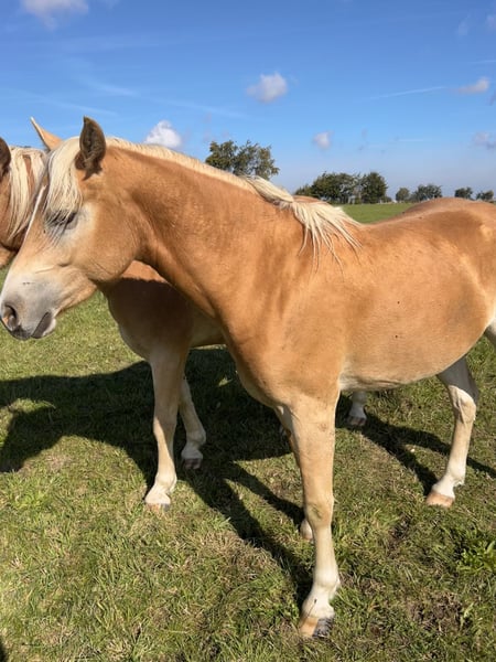 Wir möchten unseren 2 1/2 jährigen Edelbluthaflingerwallach "Manolo" aus eigener Hobbiezucht anbieten. Er ist bisher mit anderen Jungpferden in Offenstall und Wiese aufgewachsen und konnte seine Kindheit in vollen Zügen genießen. Er geht neugierig auf Menschen zu, lässt sich gerne putzen, kraulen und beschäftigen. Er kennt das Halfter, wurde aber bisher noch nicht gearbeitet. Für einen Edelbluthaflinger ist er hochgewachsen, sodass er auch größere Menschen tragen könnte. Durch seine neugierige und liebevolle Art kann er ein tolles Freizeit und Familienpferd, aber auch sportliches Potenzial für mehr (s. Abstammung).