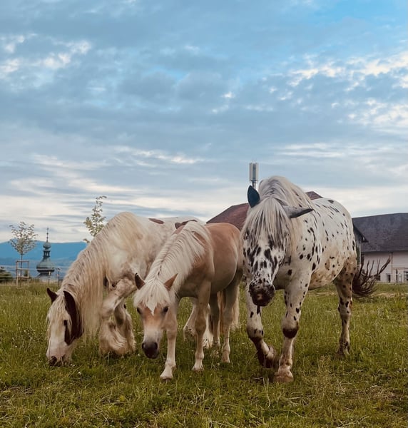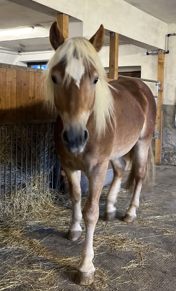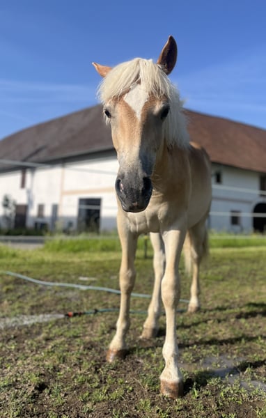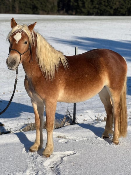 Mit schwerem Herzen verkaufen wir unseren selbstbewussten, liebevollen 2,5-jährigen Berti. Er wurde bei uns zu Hause geboren und durfte von Anfang an in einem stabilen Familienverband aufwachsen – lange Zeit gemeinsam mit seiner Mutter und seiner Halbschwester. Diese ruhige und soziale Kindheit hat ihn zu dem ausgeglichenen, menschenbezogenen Jungpferd gemacht, das er heute ist. Später wechselte er in eine reine Bubengruppe, wo er sich altersgerecht austoben und weiterentwickeln konnte. Berti ist das Ebenbild seines Vaters Barikal (auf den letzten beiden Fotos zu sehen): eine seltene B-Linie, kräftig, kompakt, mit starken Hufen wie ein Noriker – ein Pferd vom alten Schlag. Diese Ursprünglichkeit trägt auch Berti in sich. Gleichzeitig bringt er durch seinen Ox-Anteil von 4,69 % eine angenehme Sportlichkeit mit und gehört daher keinesfalls zu den langsamen Haflingern. Er vereint Kraft, Ausdauer und eine schöne, natürliche Bewegungsfreude. Seine Mutter stammt aus der sportlichen Linie und bringt zusätzlich Größe und Eleganz mit. Dadurch wird Berti voraussichtlich ein Endstockmaß zwischen 1,46 m und 1,51 m erreichen – ideal für alle, die einen kräftigen, aber dennoch gut nutzbaren Freizeitpartner suchen. Aufgrund seines Ox-Anteils besitzt Berti einen weißen Pass, da er in Österreich offiziell nicht als Reinzucht Haflinger gilt. Für uns ist er dennoch genau das, was ein Haflinger ausmachen sollte: ehrlich, robust, leistungsbereit und mit einem wunderbaren Charakter. Berti wird einmal ein verlässlicher Partner fürs Leben – für Wanderreiten, Kutsche fahren, Arbeiten im Wald oder einfach für viele gemeinsame Stunden. Ein Pferd, das mit seinem Menschen durch dick und dünn geht. Aktuell steht Berti in liebevoller Ausbildung bei Florian Oberparleiter (www.florian-oberparleiter), wo er eine ruhige, sanfte und pferdegerechte Ausbildung genießen darf. Bei ehrlichem Interesse und weiteren Fragen stehe ich sehr gerne zur Verfügung – natürlich auch über WhatsApp. Berti sucht einen Menschen, der seine Qualität, seine Herkunft und sein großes Herz zu schätzen weiß.