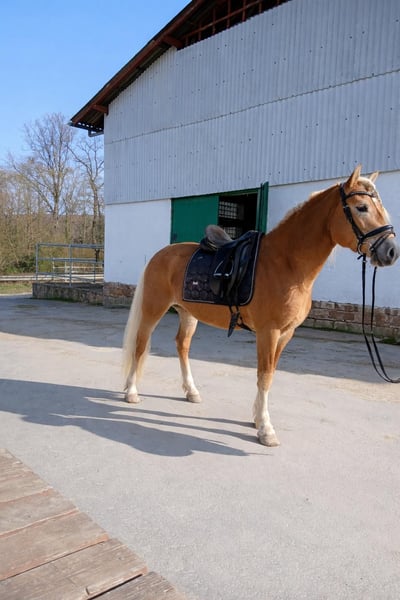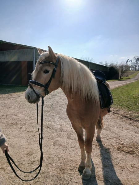 Zum Verkauf steht ein typvoller Haflingerwallach, 3 jährig, mit einem Stockmaß von ca. 1,46m ist noch im Wachstum. Kennt Sattel, Trense und Reiter wird zur Zeit weiter ausgebildet. Als Fohlen war er pämiert.