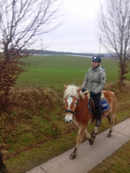 Wir verkaufen unseren fast 4 jährigen Haflinger Wallach. Aktuell ist er ca. vorne 145cm groß, hinten um die 148cm. Also noch etwas unförmig. Seine Eltern sind beide eher größer, deshalb hatten wir die Hoffnung dass auch eher mindestens das Endmaß erreichen wird. Er hat komplette Papiere aus dem Tirol sein Vater ist liz. Manhattan. Aktuell ist er schon leicht angeritten. Er kennt es mit Reiter im Schritt, Trab und Galopp. Im Gelände war jetzt auch schon und geht alle drei GGA, wobei natürlich die Kraft noch fehlt um den Galopp halten zu können. Er ist schon jetzt absolut entspannt und es erschreckt ihn fast nix. Für alle Sparten geeignet. Mit weiterer Ausbildung steigt der Preis. Bei ernsthaften Interesse gerne melden. Dann gibt es auch ein Video.