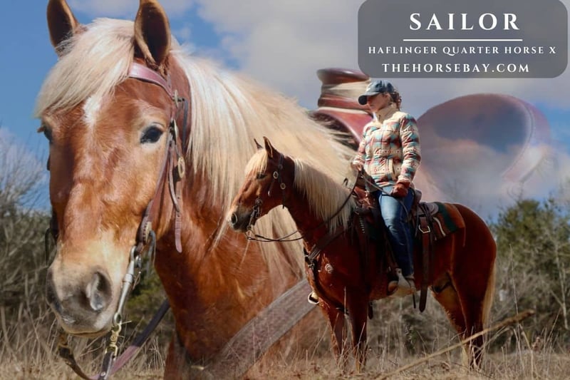 Check him out!!! He’s the real deal! Sailor is a Haflinger Quarter horse cross gelding standing at 14.3 hands tall and 4 years old. He has a lot of training and experience already under his cinch. He has started driving, but we mostly just ride Sailor. He is also trained to lie down for mounting or dismounting. Sailor has a ready-to-please, willing attitude; you can’t go wrong with him. He rides great out on the trails and looks good doing it. I just love his coloring; he almost looks like a golden palomino with that flaxen mane and tail. And I love the flaxen feathering on his legs; he looks like he has four white stockings. And that cute little star on his forehead with the curious soft eyes. But Sailor is more than just a handsome fella, he is VERY broke and SAFE! He goes anywhere you point him down the trail with NO hesitations and NO fear. He is a blast out on the trail. He’ll step over any size log, and if you want him to, he’ll jump them too! He would make a great prospect for a fox-hunting horse or a jumping horse. He goes into any water and is not afraid to swim a river for you. Steep banks? No problems he just hops right up them. Picks his way down a steep hill carefully. Wildlife doesn’t faze him, and he’s used to a doggy sidekick popping in and out of places and running up full speed behind him. He has excellent manners. He does NOT care a bit about where the other horse is. He will leave home alone, ride away from the group, and can lead or follow. NO bad habits or vices. He gets along with the herd and is in the middle of the pecking order. Easy to catch, friendly, and willing to please. Smart, too, he catches on to new things quickly. He will pony other horses doesn’t mind a rope being thrown off of him. He has also been hobbles trained. Loads in the trailer and hauls great. Not spooky and he’s used to traffic doesn’t mind cars whizzing by him. Sailor has also been started in harness and has been hitched double, so if someone wants to continue that training with him, he already has an idea and has been driven a few times. But lately we’ve mainly been using him as a trail horse. He rides right in between your legs, knows his cues well, and has had arena work, so he’s comfortable being in an arena. Neck reins fine. Stands good for picking up his feet. Very smooth canter and a trot that’s easy to post to. He comes up to date on everything: Vet Check, Coggins, Shots, Wormings, etc. Just call with any questions or to schedule a time to come see him in person.