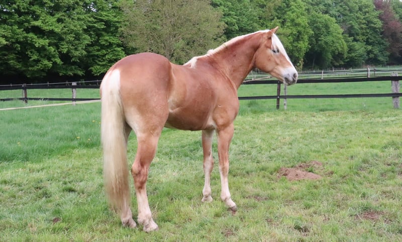 Age: born 3/22 Gelding Sire: liz.562/T Wotan Dam: by liz.280/T Wolfgang Breed: Tyrolean Haflinger Coat color: brown/light mane Height: currently approx. 152cm Currently in basic training, he shows a willingness to learn and strong nerves. Pasture time in a gelding herd. We sell only to professional hands, no sale to private individuals. Price according to quality: €8,900