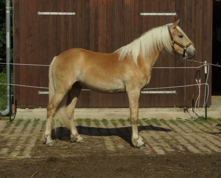 Cavallo da 4 anni, stallone, circa 153 cm Addestrato e conosciuto al passo, trotto e galoppo sotto il cavaliere Bravo nel maneggio, senza vizi come morsi o calci, si lascia portare in passeggiata in gruppo Padre: Elite Almquell Vincitore del Campionato dei Puledri MV 2022 Contatti: Feli8084@web.de oppure telefonicamente al: Cellulare: 0172/7175444