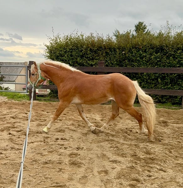 For sale is a 4-year-old Haflinger gelding, approximately 160 cm tall (just gelded), with excellent pedigree. He has a very good conformation and moves beautifully. He has been raised appropriately in a herd environment and has developed splendidly. He is now ready for training. He has a wonderful temperament and will surely make a great partner for leisure riding or sport. He is lunged, accustomed to being tied, groomed, and handled. A smaller Haflinger gelding with top pedigree is also available. No known health issues or allergies. An equine health check (AKU) can be arranged. Please feel free to call or send a message at 0157 36803742. All information is provided without guarantee. Price is subject to change. Transportation can be arranged. Online purchase possible.