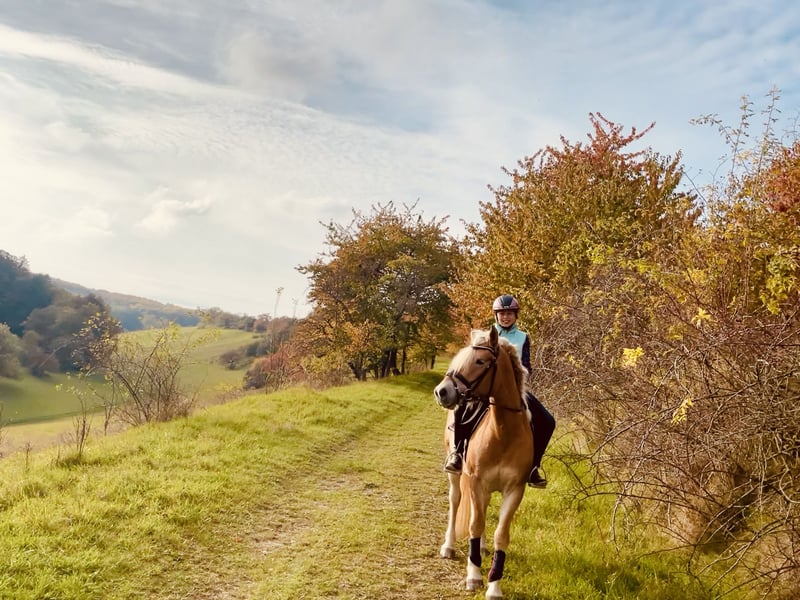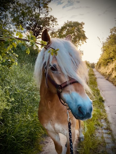 Zu Verkauf steht unser 5jähriger Haflingerwallach Archi. Er ist sehr menschenbezogen und super verträglich mit anderen Pferden. Er geht allein und in der Gruppe ins Gelände, ist dabei immer artig. In der Halle lässt er sich sehr angenehm reiten. Verkauft wird er nur, weil die Reiterin leider schon zu groß geworden ist, sonst würden wir uns nicht von diesem Ponyschatz trennen.