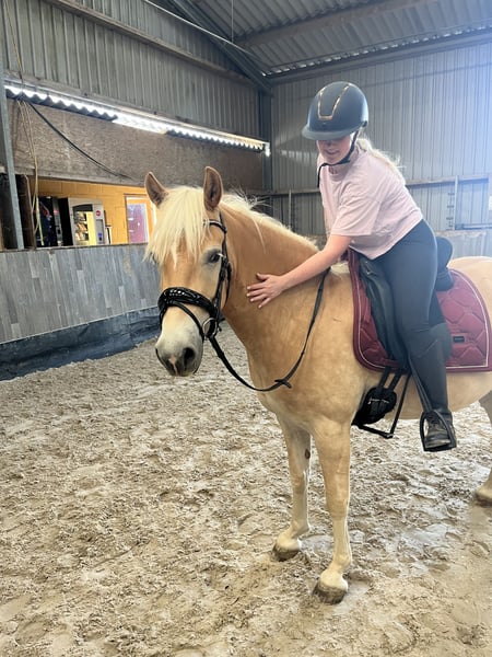 Hij staat netjes op de poetsplaats en wasplaats (al vindt hij dit niet geweldig), is braaf bij de hoefsmid, dierenarts en tandarts en laat zich probleemloos opzadelen. 🌸