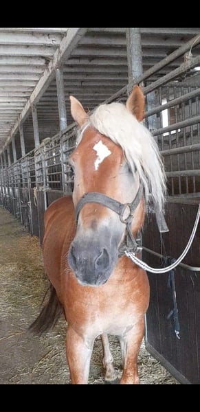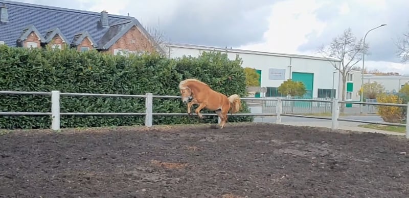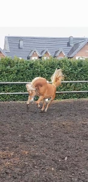 Waldemar is a tall and robust Haflinger with a very athletic build. He is confidently lunged on both hands, stands calmly during mounting and dismounting, and is familiar with rider weight on the longe line at walk and trot. Due to his size, he once got his mane caught on the feed barrier in the foal stall, so we have now completely trimmed it (proof photos available ;-)). He is currently still a stallion but can be castrated before pickup if desired. You can arrange to meet Waldemar by phone at 01639129382. He is currently located in Jülich.