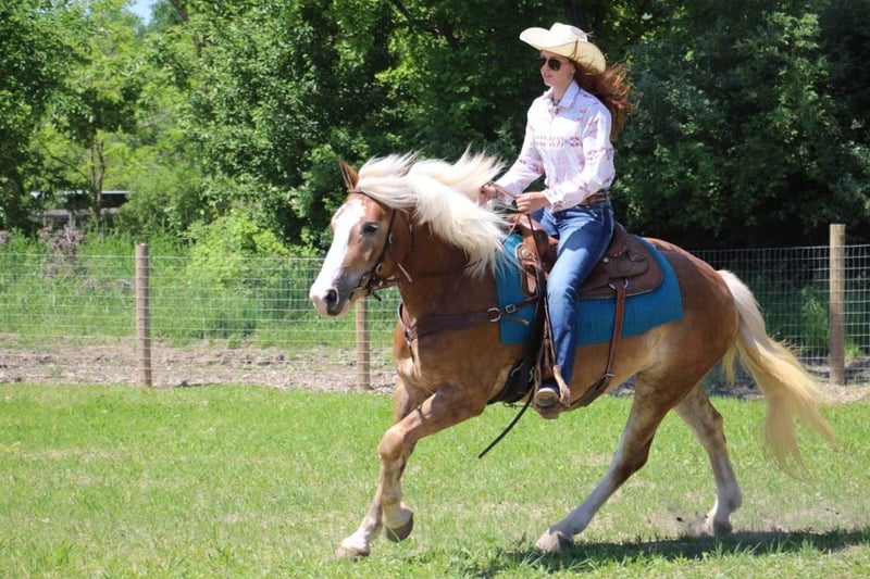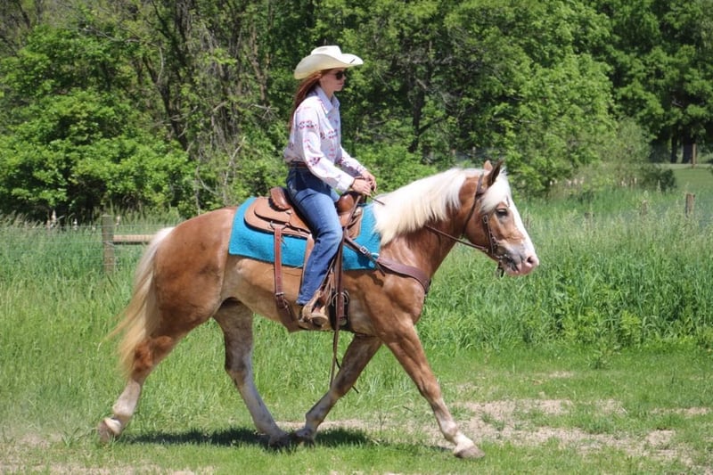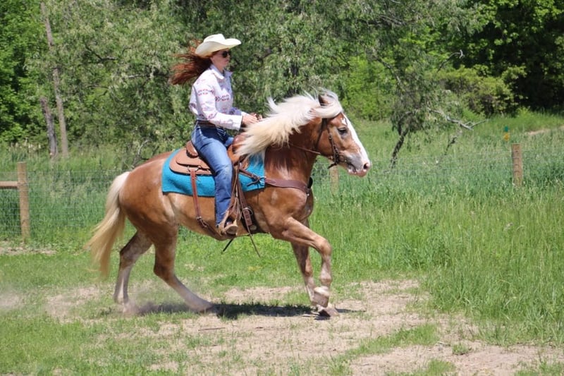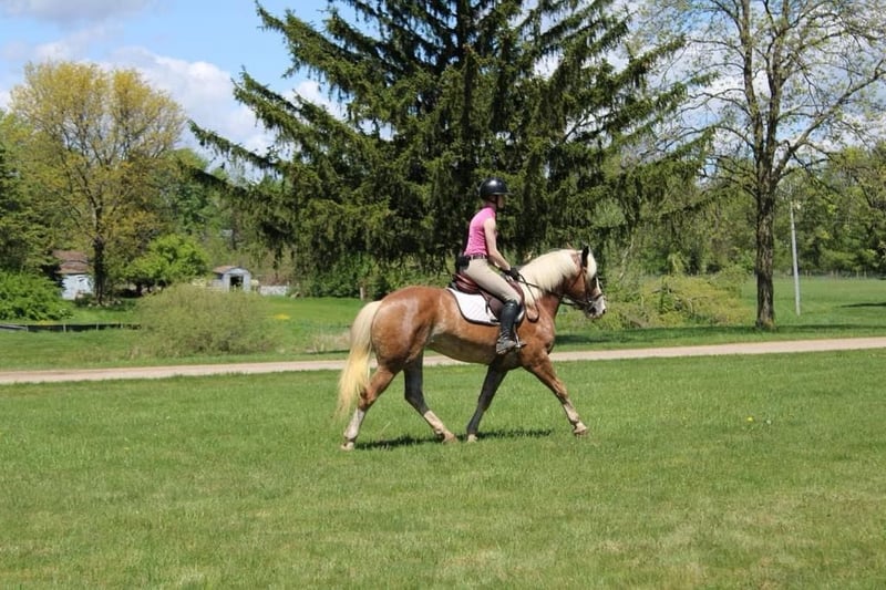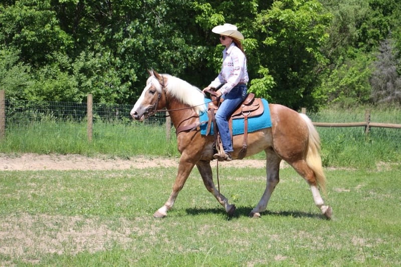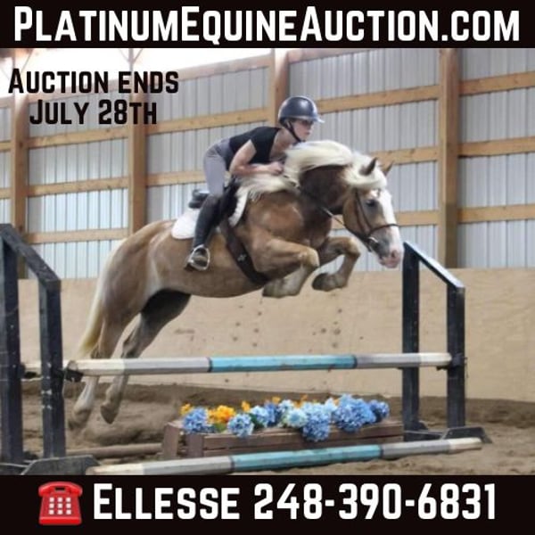 ONLINE AUCTION Place your bids at www.PlatinumEquineAuction.com Starting Bid $3500 Auction ends July 28th, 2024 Need a new saddle? Check out White Rock Saddles on our website or Facebook! Meet Pepsi! Here’s a haflinger that will be hard to beat. With her beautiful double mane and long blonde tail he’s as beautiful as you will find with her dappled coat. You’ll put a lot of miles on your truck to find one like her. He’s solid and very dependable. Pepsi is 4 years old and 14.2hh. She has nice sporty conformation. Pepsi walk trot and canters with ease. Pepsi knows both her leads and has great transitions both upward and downward. All of her gaits are smooth and comfy. Pepsi has a heart of gold and aims to please every time. She has a quiet with a go with the flow temperament. She has recently started over fences and is a natural at jumping. She holds a slow and steady canter to the jumps. Pepsi is currently jumping 2ft but he has potential to jump 2’6”. Pepsi also rides western and trail rides like a dream. She is confident out in the woods. While you’re riding out alone or in a group Pepsi is always down for a trail ride. Pepsi is not the spooky type, not much phases her. Shes been hauled to different state and metro parks in Michigan, Ohio, Kentucky, and Indiana. She has seen the sites and has all the experience. Pepsi is also broke to drive. She pulls a cart or buggy and is easy to drive around. On the ground she is patient and respectful. She likes people and treats while being mindful of your surroundings. She stands for mounting/dismounting, grooming, and bathing. Pepsi plays well with other horses and he is an easy keeper! Pepsi is overall so sweet and very willing! Shes smart and learns new things quickly. Pepsi is an all around girl. Shes great for kids and adults on the ground and undersaddle. Please contact Ellesse Schwartz 248-390-6831 for more information. She is located in Howell, Michigan 48855. ONLINE AUCTION Place your bids at www.PlatinumEquineAuction.com Starting Bid $3500 Auction ends July 28th, 2024 Need a new saddle? Check out White Rock Saddles on our website or Facebook!