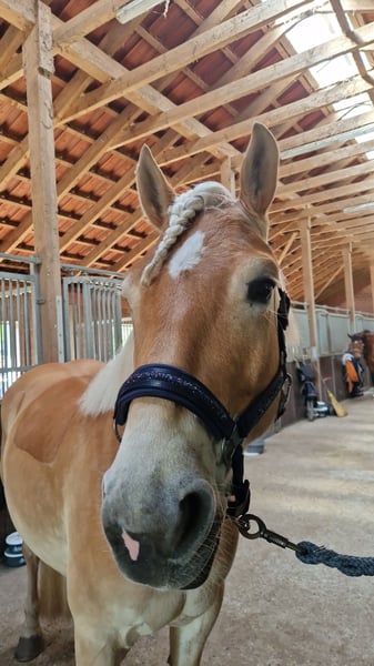 Schweren Herzens verkaufe ich meinen charmanten Haflinger-Wallach, geb. Am 07.04.2020. Dieses gut gerittene Pferd überzeugt durch seine angenehme Art und sein angenehmes Temperament. Mit einem Stockmaß von 148 cm ist er perfekt für den Dressursport geeignet und zeigt bereits viel Potenzial in der Ausbildung wie: seitwärtgänge, fliegender wechsel, Schulter herein... Apollo ist ein zuverlässiger Partner, der sowohl für den Freizeitbereich als auch für den ambitionierten Dressurtraining geeignet ist. Gerade im Frühling und im Sommer genießt er auch den ein oder anderen Ausritt. Denn gerade bei Ausritten kann sowohl Apollo als auch der Reiter richtig runterkommen und entspannen. Er hat total Spaß im Wasser und kann auch ein richtiger quatschkopf sein. Für mich gilt PLATZ VOR PREIS. Mir ist es viel wichtiger das er ein wunderschönes neues Zuhause findet. Befunde hatte er noch keine. Weder eine Kolik noch sonst irgendwas. Bei Interesse freue ich mich auf Ihre Kontaktaufnahme, um weitere Details zu besprechen. WhatsApp: 015112362613