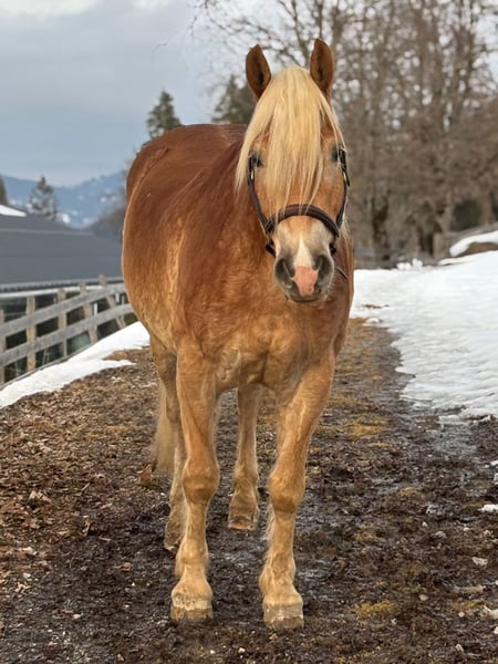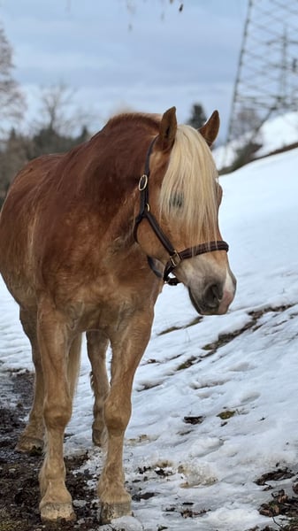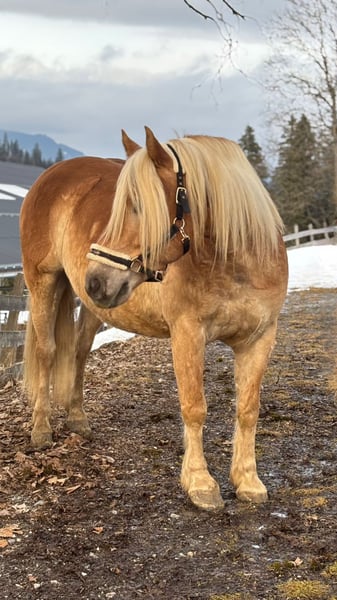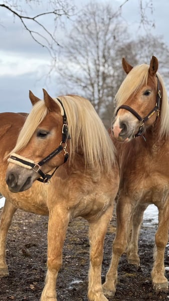 Zum Verkauf stehen zwei ausgesprochen hübsche Haflinger, die nicht nur optisch ein echter Hingucker sind, sondern auch mit ihrem einwandfreien Charakter überzeugen. Die beiden sind mega brav im Umgang, absolut menschenbezogen und zeigen keinerlei Unarten. Waldemar (mit Lederhalfter) geboren 2020 Stockmaß 156cm Vollbruder Western geboren 2019 Stockmaß 153cm Sie sind für den Freizeitbereich geeignet wir können sie uns auch hervorragend als Kutschpferde vorstellen. Wir haben intensiv mit ihnen an der Doppellonge gearbeitet, wodurch sie schon ein bisschen Erfahrung sammeln konnten, dabei zeigen sie sich sehr Vorbildlich und gelassen. Beide sind topfit, arbeitswillig und stets motiviert. Wir können uns die beiden gut vorstellen an einem Gespann. Im täglichen Umgang absolut unkompliziert. Wer zwei charakterstarke, ehrliche und super brave Haflinger für den Fahrsport oder Freizeitbereich sucht, bekommt hier ein tolles Duo mit Herz. Preis: Pro Pferd 5000€