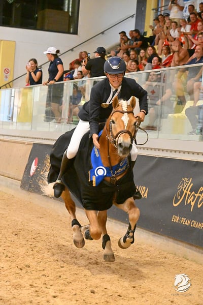 Winterstern-Wodka was born in 2020 and is a son of Liz. 481 Wulkan, out of the renowned mare PE17718/T Soraia-Sissie (P15739/T Smelina x Liz. 150/T Alpenstein). Winterstern was bred by Johann Wagner (Münster, Tyrol, AT) and approved as a three-year-old stallion in Ebbs (AT). Due to limited semen quality, Winterstern was withdrawn from breeding and gelded at the age of four. He has a height at the withers of 155 cm. In August 2024, Winterstern participated in the European Championship for Haflingers in Stadl-Paura. He delivered an outstanding performance and became European Young Horse Jumping Champion! As a four-year-old, Winterstern competed in international show jumping events in the 90/95 cm classes. Afterwards, he was introduced to dressage at level L2. Winterstern also enjoys long trail rides through the forest. He is well-mannered and has a good temperament. He behaves excellently with the farrier, during loading, and in the stable. He has no stable vices. Winterstern is PSSM-1 negative. In November 2025, he was examined both clinically and radiologically, with a report available. A talented all-round sport Haflinger!