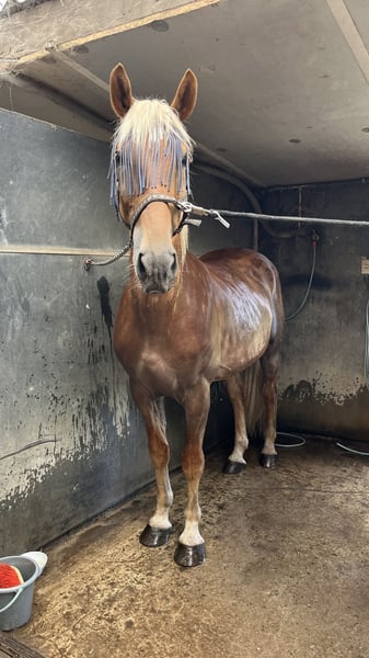 Balou is een 7-jarige ruin van 1.60m, afkomstig uit Hongarije en sinds begin 2023 in Nederland. Over Balou: Balou is een echte werker en laat zien dat hij graag wilt. Hij heeft nog weinig ervaring en heeft dus nog wat begeleiding nodig. Hij gaat goed op veel afwisseling. Elke dag rijden in de bak is hij na een tijdje beu. Af en toe een sprongetje maken vindt hij ook leuk. Hij is nog nooit naar buiten geweest en dus ook niet verkeersmak. Onze buitenbak en longeercirkel staat aan de weg. Maar wanneer er auto’s, fietsers of groot verkeer langskomen kijkt hij er nauwelijks van op. Begin oktober 2025 zijn we met hem voor het eerst aan de hand naar het strandje geweest (500m lopen van stal). We zijn maar 15 min weggeweest maar was voor hem lang genoeg. Hij vond het erg spannend maar het ging wel heel erg goed. Omdat we alleen tussen oktober en april op het strand mogen met honden en paarden was het ook heel druk met loslopende honden. Hierdoor bouwde hij wel veel spanning op. Hij luistert naar zijn naam en komt naar je toe lopen als je hem roept. Ook met longeren gaat hij goed op je stem en reageert op de commando’s. Karakter: Balou is een echte persoonlijkheid. Een knuffelkont die graag contact zoekt en zich soms letterlijk tegen je aan komt hangen. Balou is niet geschikt voor kinderen of beginnende ruiters, vanwege zijn soms onvoorspelbare gedrag en forse kracht. Aan de hand kan hij uitdagend zijn. Soms loopt hij keurig met je mee, maar op andere momenten trekt hij of gaat hij rennen. Een hengstenketting is daarom echt noodzakelijk. Dit gaat de laatste tijd wel steeds beter en begint hij steeds meer lief achter je aan te lopen. Ook heeft Balou een uniek en grappig trekje: hij vindt het ontzettend leuk als je met zijn tong speelt. Hij kan daar echt van genieten en het werkt vaak ontspannend voor hem. Het zegt veel over zijn nieuwsgierige, soms wat ondeugende karakter. Wat zoekt Balou? Balou heeft een ervaren, consequente ruiter of begeleider nodig die stevig in zijn/haar schoenen staat. Iemand die hem verder wil opleiden, duidelijke grenzen kan stellen en voldoende tijd heeft om met hem te werken. Met de juiste persoon en aanpak kan Balou echt een fijn, werkwillig paard worden. Hij wordt aangeboden voor recreatief gebruik – dus voor iemand die graag ontspannen met zijn paard wil werken, buitenritten wil maken, eventueel aan de slag wil gaan met grondwerk of mennen, maar geen sportambities heeft. maar op zoek is naar een bijzondere pony om rustig en bewust mee aan de slag te gaan. Waarom verkoop ik hem? Met pijn in mijn hart heb ik helaas de beslissing moeten nemen om Balou te verkopen omdat ik merk dat de klik tussen ons weg is. Balou verdient iemand met wie hij die klik wel gaat krijgen, iemand die met frisse energie en liefde met hem verder wil. Iemand die daar de tijd voor heeft en die hem de begeleiding kan geven die hij nodig heeft. Met rijden kent hij de basis maar moet nog goed doorgereden worden om het echt onder de knie te krijgen. Ook denken we dat hij vroeger voor de kar heeft gestaan. Ik denk dat als je dit opnieuw zou oppakken/aanleren dat je er een leuk menpaard van kan maken. Ik zoek een goed huisje voor hem met iemand waar hij verder getraind kan worden. Iemand die daar de tijd, ervaring en geduld voor heeft. Als hij het eenmaal onder de knie heeft dan is het echt een top paard en kan je alles met hem. Extra informatie. - in november 2023 is Balou klinisch en röntgenlogisch goed gekeurd op benen en hoeven. Rapport en foto's zijn aanwezig. Opnieuw keuren is voor eigen kosten. - Balou heeft elk jaar zijn verplichte entingen gehad. - Begin 2024 zijn zijn wolfskiezen getrokken. Oktober 2025 heeft hij weer een gebitbehandeling gehad. Dierenarts gaf aan dat er bij hem weinig hoefde te gebeuren en dat hij prima om de 1,5/2 jaar gedaan hoeft te worden. - elke 8 weken wordt hij bekapt. Hij staat niet op ijzers. - filmpjes van longeren of rijden beschikbaar. - bij de koop van Balou kan je ook spullen overnemen. Waaronder zadel en hoofdstel. We kunnen samen even kijken wat je wilt hebben. - geen stalgebreken. - super lief met andere paarden in de wei.