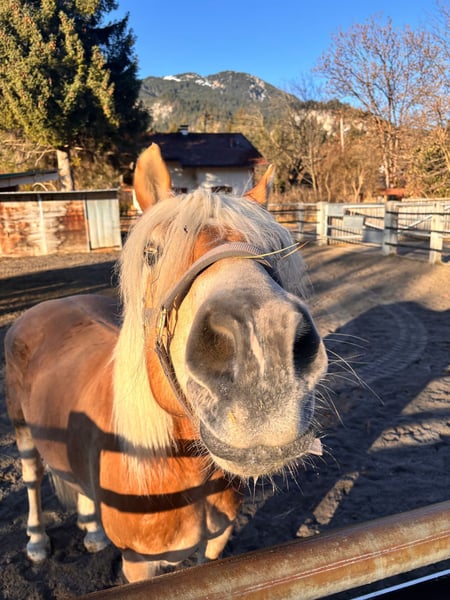 Since autumn, the handsome 7-year-old Haflinger gelding Navaro (height approx. 160cm) has been in our care. Now, this lovely fellow is ready and eager to finally meet his very own special person. Navaro is a sensitive and spirited horse; he can be extremely assertive at times and is typically Haflinger-stubborn. He requires clear and consistent leadership and therefore absolutely needs an experienced horse person by his side who knows exactly how to handle challenging horses and guide him through life with loving firmness. He is already ridden and will need a lot of training, targeted development, and daily engagement in his new home. Navaro is in excellent health, fully vaccinated, and with the right handling, he is up for any fun. In a herd setting, he is very uncomplicated and sociable. He tends to be higher in the hierarchy without taking on the leadership role. In his new home, he definitely wishes for a diverse herd with plenty of playmates. Navaro will be placed in an open stable or a night box with daily pasture access.
