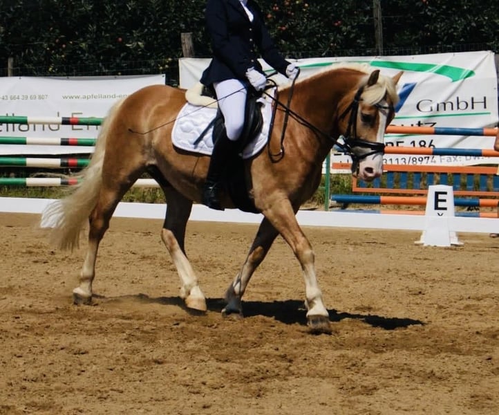 Schweren Herzens verkaufen wir unseren geliebten Haflingerwallach aufgrund des Umstiegs auf ein Großpferd. Er ist ein sehr liebes und braves Pferd im täglichen Umgang und stets freundlich im Handling. Natürlich hat auch er - wie jedes Pferd - seine kleinen Eigenheiten, insgesamt ist er jedoch unkompliziert und zuverlässig. Unter dem Sattel zeigt er sich lernwillig. Er ist bereits mehrere Turniere gegangen und konnte in der Dressur Noten über 7,0 bis hin zum Lizenzniveau erreichen. Auch im Springen wurde er vorgestellt (bis ca. 90 cm). Wir wünschen uns für ihn ein nettes, pferdeerfahrenes Mädchen oder eine liebevolle Reiterin, die gerne weiter mit ihm lernen, Spaß haben und eventuell auch Turniere starten möchte. Er wird ausschließlich in einen absoluten Bestplatz abgegeben. Keine Händler!