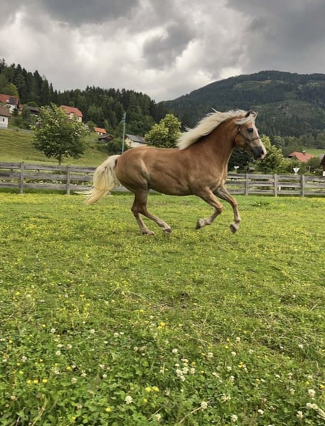 ✨ Haflinger Mare Faluna-Ri Seeks a New Home ✨ Our typy nine-year-old mare, with approximately 15.0 hh, impresses with her presence, breeding quality, and suitability for riding. ☀️ Registered in the main studbook, Class 1a show class / Rating class 2a ☀️ Successfully presented at national and regional breed shows ☀️ Has already produced two healthy colt foals, easy to breed with and uncomplicated during pregnancy and foaling ☀️ Previously backed, sensitive, and very eager to learn Faluna-Ri is an ideal mare for breeders or experienced riders looking for a horse with character.