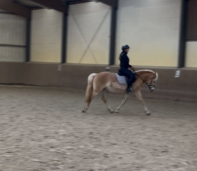 Zum Verkauf steht „Ravel“ eine liebevolle Haflinger Stute Ravel macht in jeder Disziplin Spaß und ist ein echtes Verlasspony. Ob alleine oder in einer Gruppe ausreiten, beides kein Problem. Sie lässt sich problemlos mit oder ohne Ausbinder reiten und ist stets motiviert alles richtig zu machen! Trotzdem muss sie weiter ausgebildet werden, da sie viel im Gelände unterwegs war. Dressur ist sie auf soliden A Niveau In Freispringen zeigt sie sich begeistert und schafft auch mal locker einen 1.10m Sprung. Unter dem Reiter muss das Springen noch weiter gefördert werden, aber auch da zeig sie sich positiv und lernwillig! Uns begeistert sie jeden Tag mit ihrer zutraulichen und offenen Art Neuem gegenüber! Ravel kennt es alleine oder in einer Gruppe draußen zu stehen. Nachts ist sie in der Box. Bei Interesse schreiben Sie gerne eine Nachricht mit einer kleinen Vorstellung.
