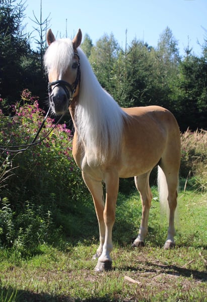 Holly ist l12 Jahre alt, ca. 148 cm, abstammend vom legendären Sportler und Vererber Sternwächter x Hanina (nach Newstyle), tragend von Sternfänger (Abfohltermin Ende Mai). Mit 7,7 ins Stutbuch aufgenommen und ausgestattet mit 3 sehr guten Grundgangarten, wobei der Schritt besonders hervorzuheben ist. Bei uns hauptsächlich als Zuchtstute genutzt, stets problemlos aufgenommen und abgefohlt. Kam 8-jährig zu uns, wurde bei uns angeritten, aber nicht weiter gefördert. Im Umgang sehr brav und zugänglich, unter dem Sattel temperamentvoll mit viel Go, kann heiß werden, jedoch kein Buckeln oder Steigen – ❗️kein Anfängerpferd ❗️- nur erfahrene Reiter. Regelmäßig geimpft und entwurmt, Schmiede und Verladefromm.
